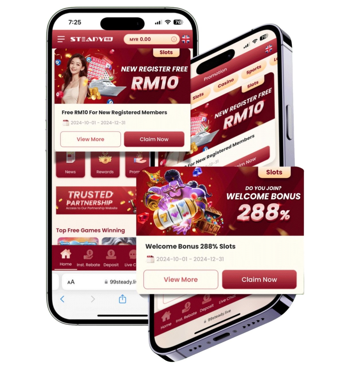 Make your first deposit of at least RM15 at STEADY Casino, and enjoy an incredible 288% bonus match. This means you get half of your deposit as bonus funds, which you can use to explore and play some of the exciting slots available on the platform. This exclusive promotion is only available to new players, so you must create an account to claim the bonus and start your gaming journey at STEADY Casino.